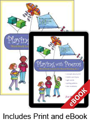 Why aren’t there more good poems for use in shared reading? Poems that address key curricular goals while making the most of young children’s love of rhythm and rhyme? Now, thanks to Zoë Ryder White, there are. She’s stocked Playing with Poems with lessons built around 44 brand-new, original poems written precisely for word study.